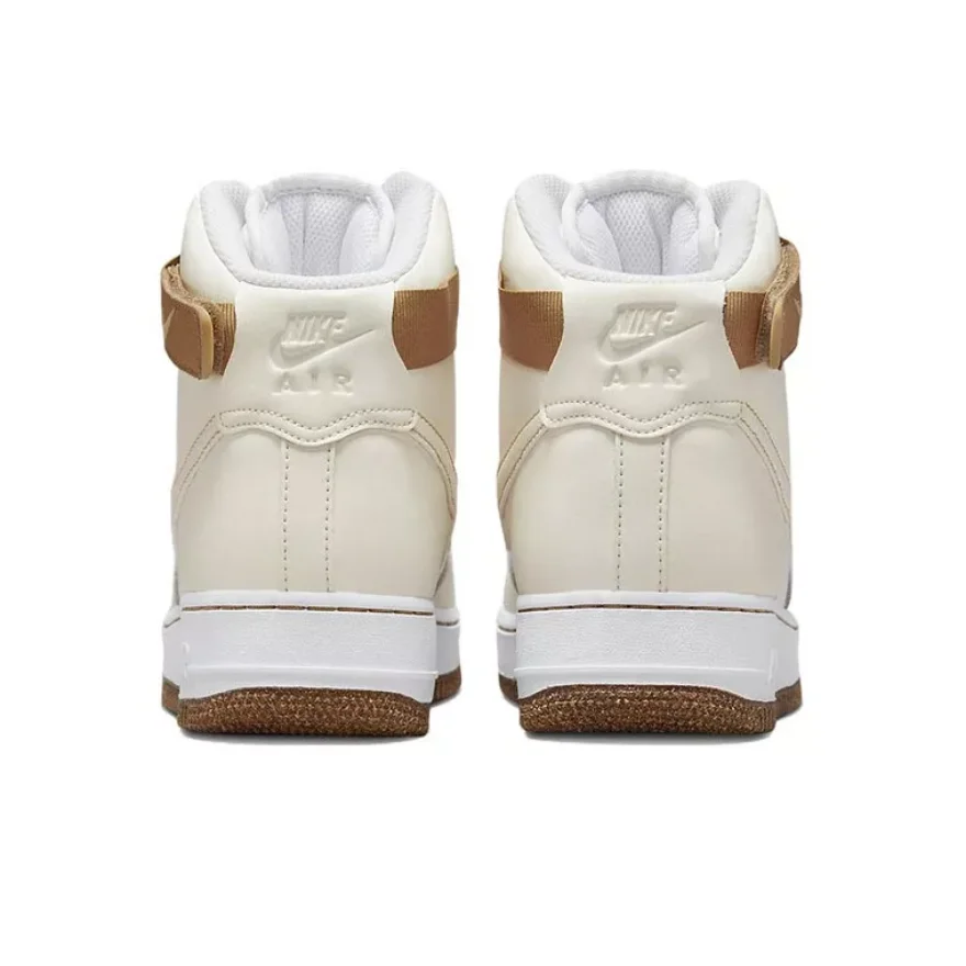 Ці кросівки Nike Air Force 1 High мають яскраво-білу шкіряну основу з накладками «Phantom» / “Inspected By Swoosh” спереду та ззаду. Фірмова галочка Nike також одягнена в «Phantom» і окреслена швом «Elemental Gold». Мереживний ремінь навколо щиколотки взуття також оздоблений кольором «Elemental Gold», який доповнює тоновану гумкову підошву.
