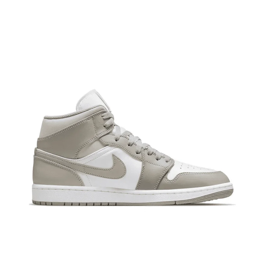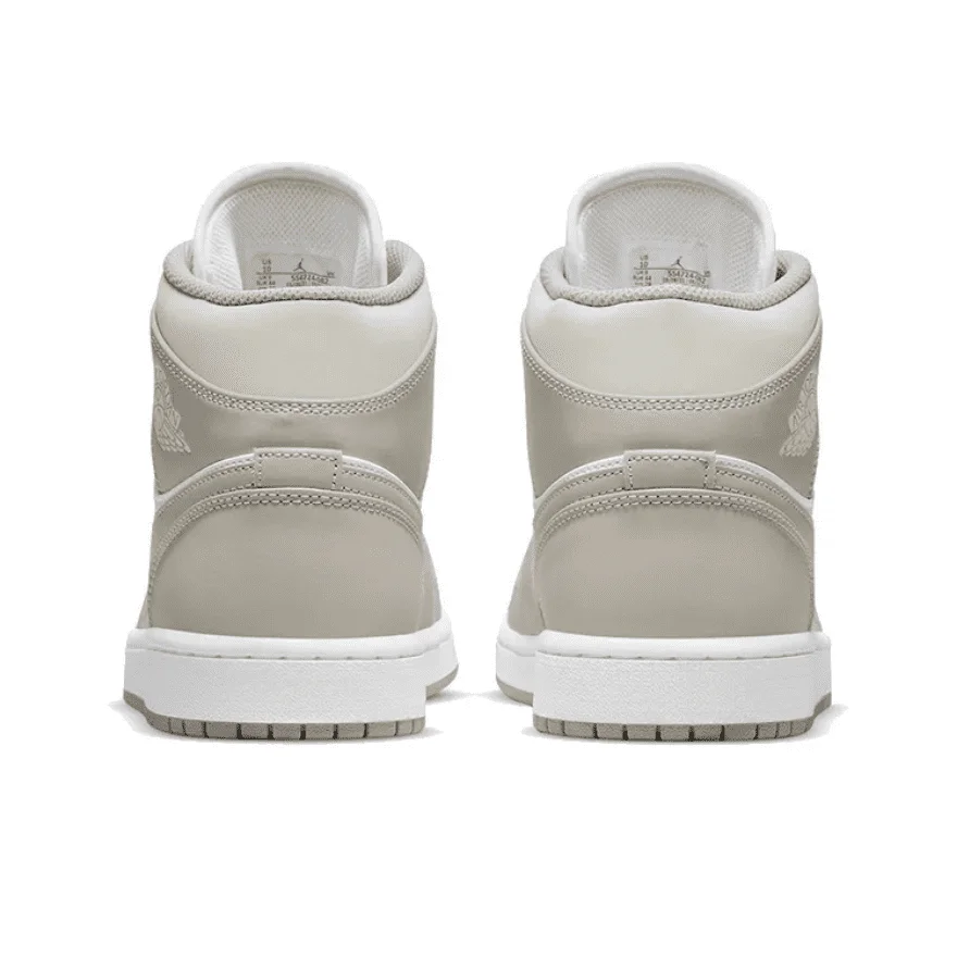 Air Jordan 1 Mid «College Grey» застосовує нейтральну двоколірну палітру до класичного силуету, натхненного оригінальним дизайном Пітера Мура 1985 року. Повністю шкіряний верх має чисту білу основу з контрастними накладками вишуканого коричневого відтінку. Бренд Jumpman прикрашає підкладку та плетений язичок, а ретро Wings прикрашає бічний клапан коміра. Середня частина опирається на міцну гумову підошву, на якій розміщено п’ятковий блок з повітряною підошвою, інкапсульований у легкому поліуретані.