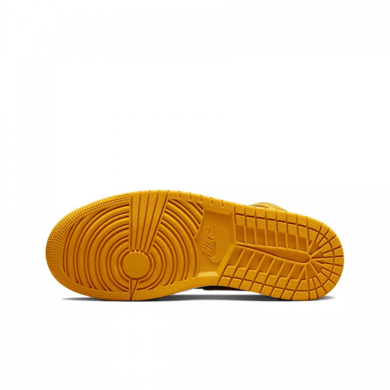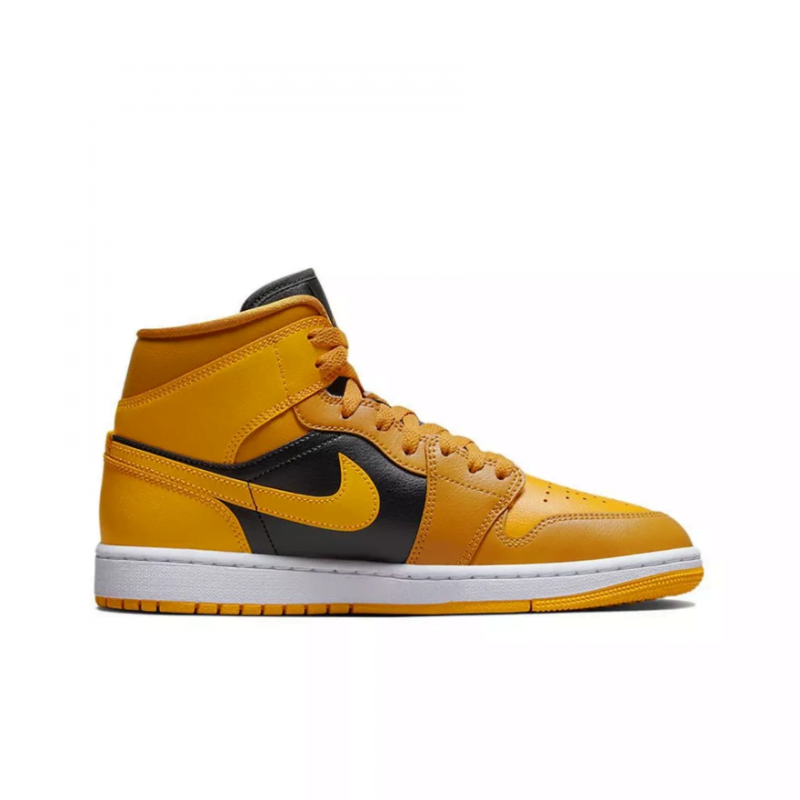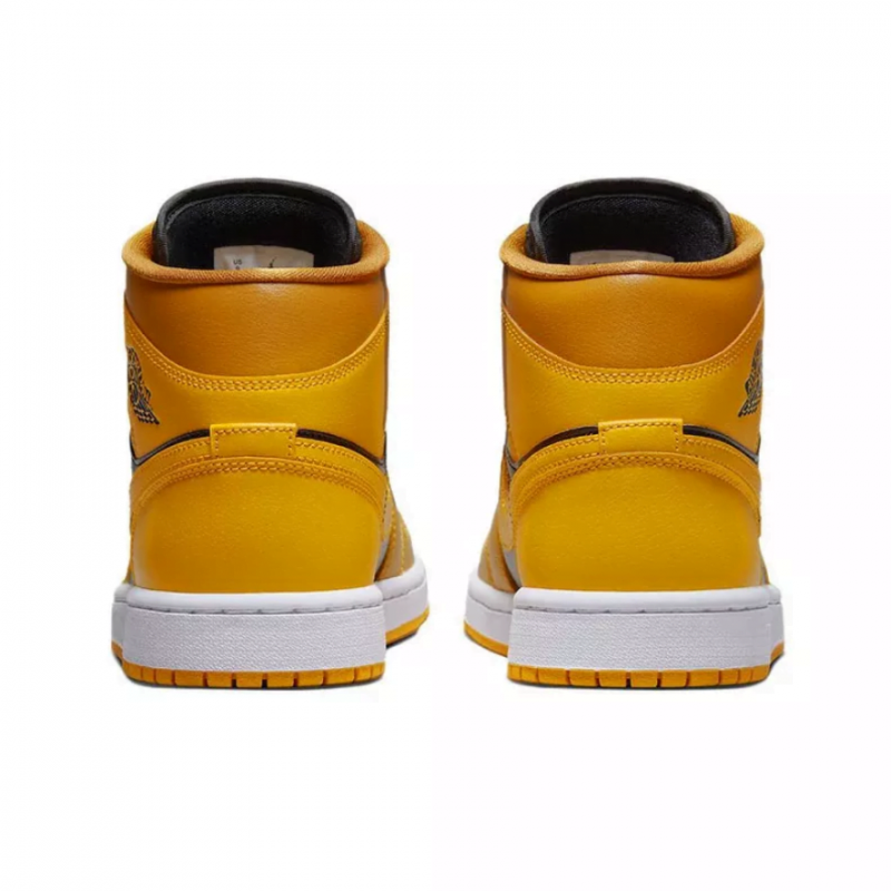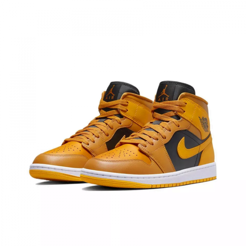 Кросівки Air Jordan 1 Mid ‘Chutney’ підкреслюють додаткові відтінки палітри кольорів бренду Jordan. Шкіряний верх має чорні четвертні панелі з контрастними вкрапленнями жовтого таксі на носку, п’яті та клапані коміра, позначеного логотипом Jordan Wings на бічній стороні. Більш темний відтінок Chutney приземляється на око та передню частину стопи. Бренд Jumpman прикрашає плетений язичок і підкладку. Інкапсульована повітряна підошва розміщена в п’яті білої гумової проміжної підошви, посиленої під ногами чіпкою жовтою гумовою підошвою.