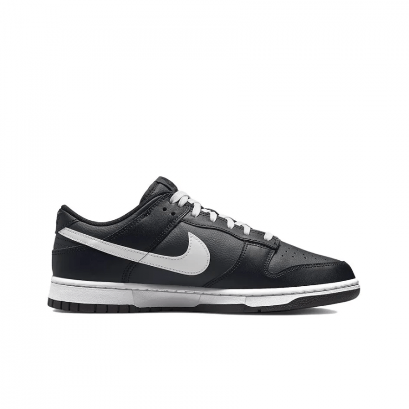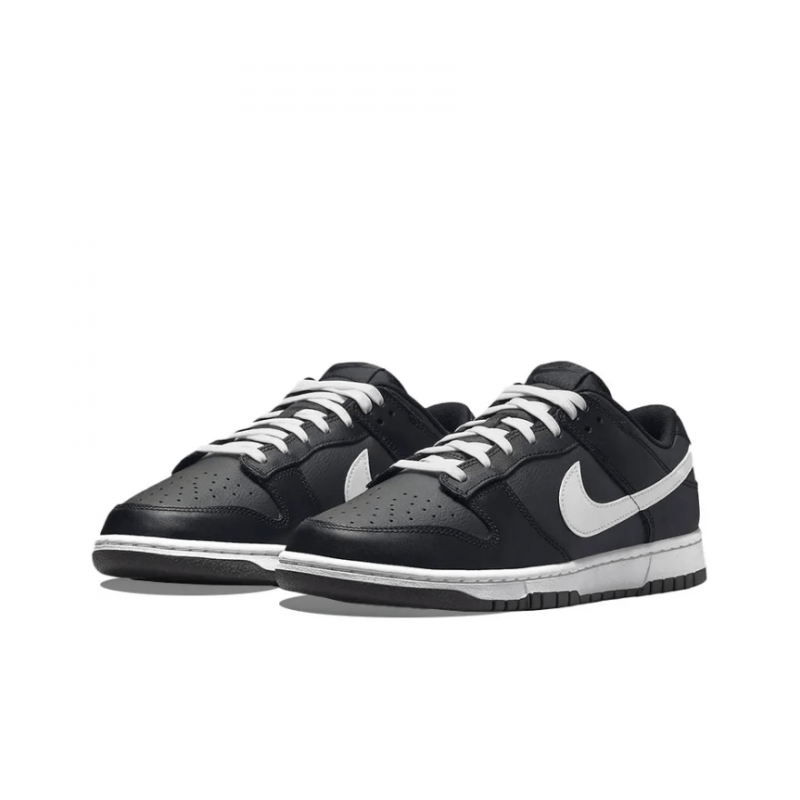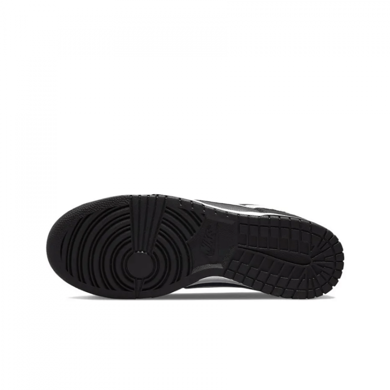 Кросівки Nike Dunk Low «Black Panda» демонструють універсальну та спрощену двоколірну палітру на твердій деревині. Верх має суцільну чорну обробку, яка має основу з витертої шкіри з гладкими шкіряними накладками. Контрастні білі акценти з’являються на шнурівці та фірмовій галочці, а фірмова символіка Nike у тон прикрашає задню вкладку та плетений язичок. Гумова підошва поєднує білі бічні стінки з чорною гумовою підошвою з поворотними колами для міцного зчеплення.