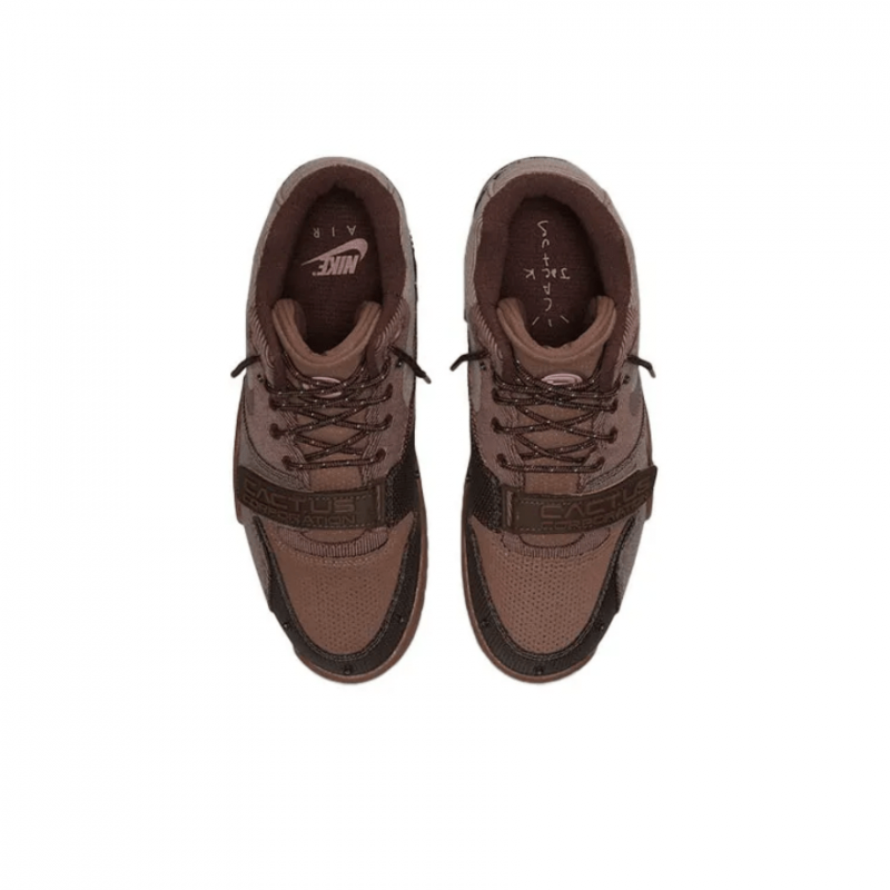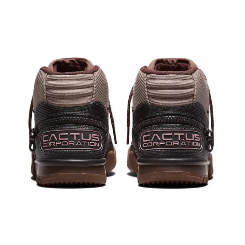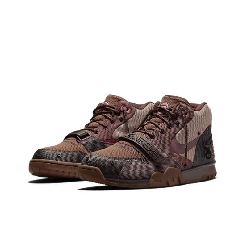 Travis Scott x Nike Air Trainer 1 SP «Chocolate / Wheat / Ashen Slate» – DR7515-200 дебютує у реперському стилі Cactus Jack щодо культових кросівок для крос-тренувань 1987 року. Верх із текстилю та нубуку різних відтінків коричневого, коричневого та лілового закріплений шнурками. На додаток до фірмової реверсної галочки Скотта на медіальній стороні, черевики підкреслені брендом Cactus Corporation на ремені в середній частині стопи та прогумованій накладці на п’яту, а також невеликій кишені на блискавці, яка може вмістити дрібні речі першої необхідності. Знімний кожух ripstop можна закріпити на верху та сховати в кишеню для язика, коли він не використовується.